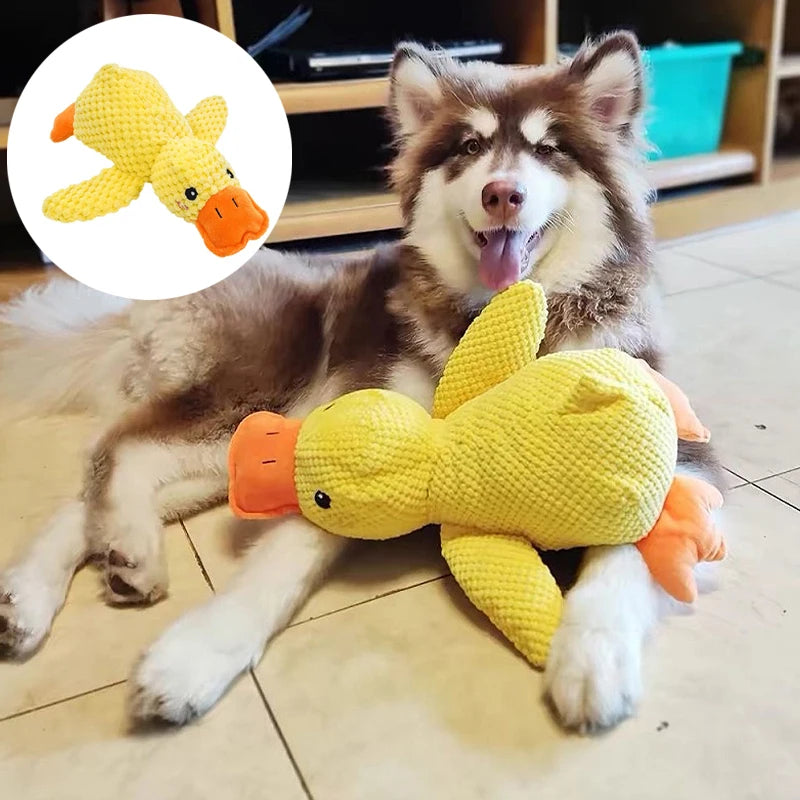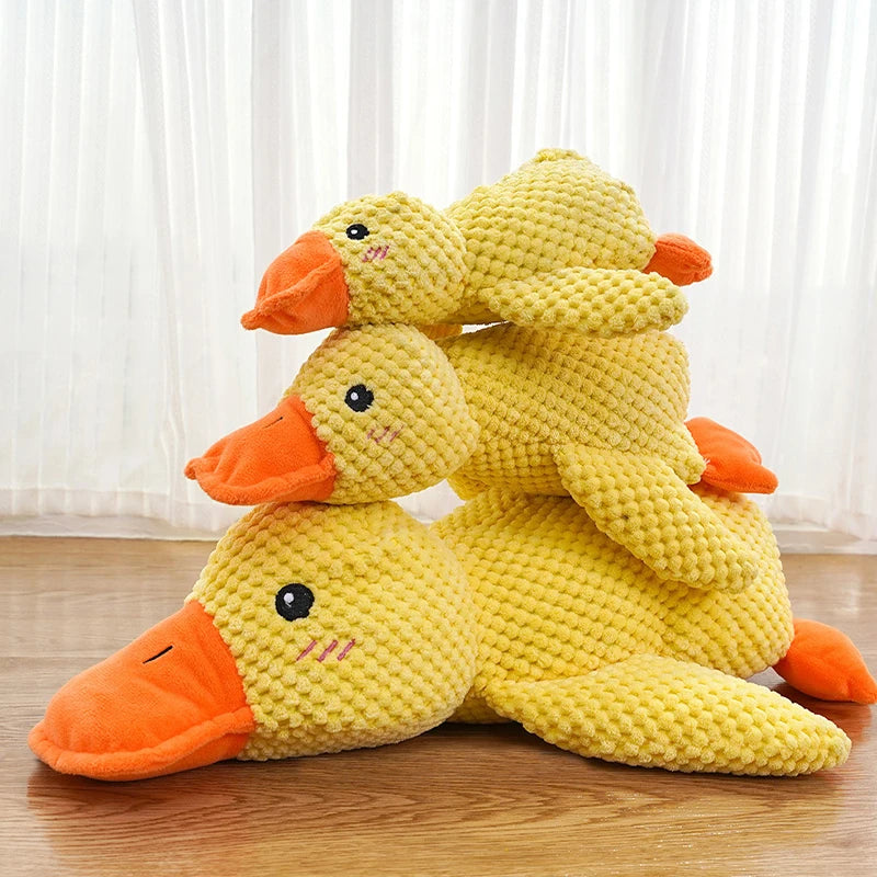 Antystresowa Zabawka dla Psa – Miękka Piszcząca Pluszowa Kaczka (Żółta)